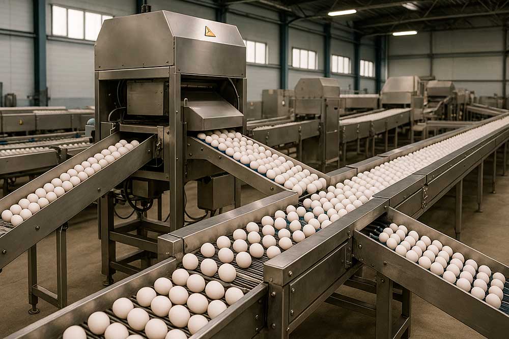 - Marcaje e impresión en huevo y envases: impresoras industriales integradas a la línea.