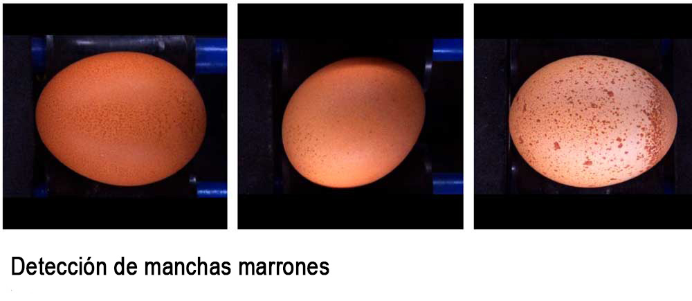 - Defectos detectables: grietas y astillas de la cáscara, fugas/filtraciones, suciedad/manchas, cambios de color, huevos deformados o “irregulares” (incluidos moteados), otros defectos visuales; los huevos defectuosos se rechazan automáticamente.