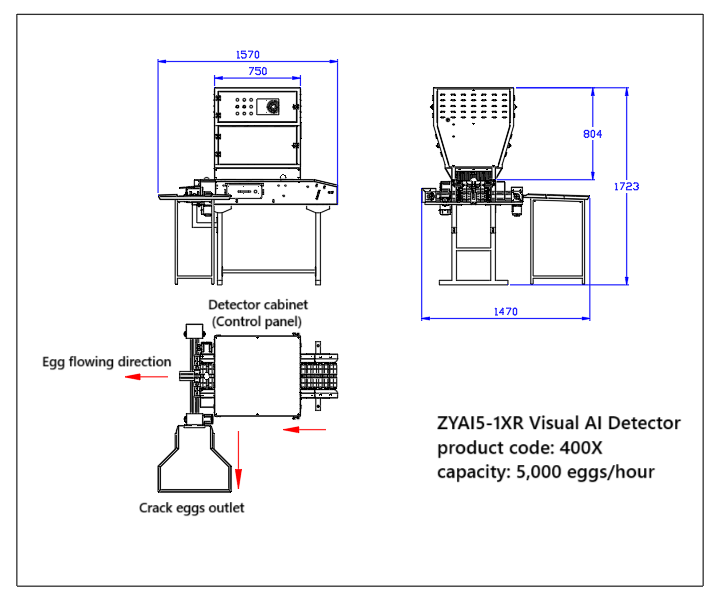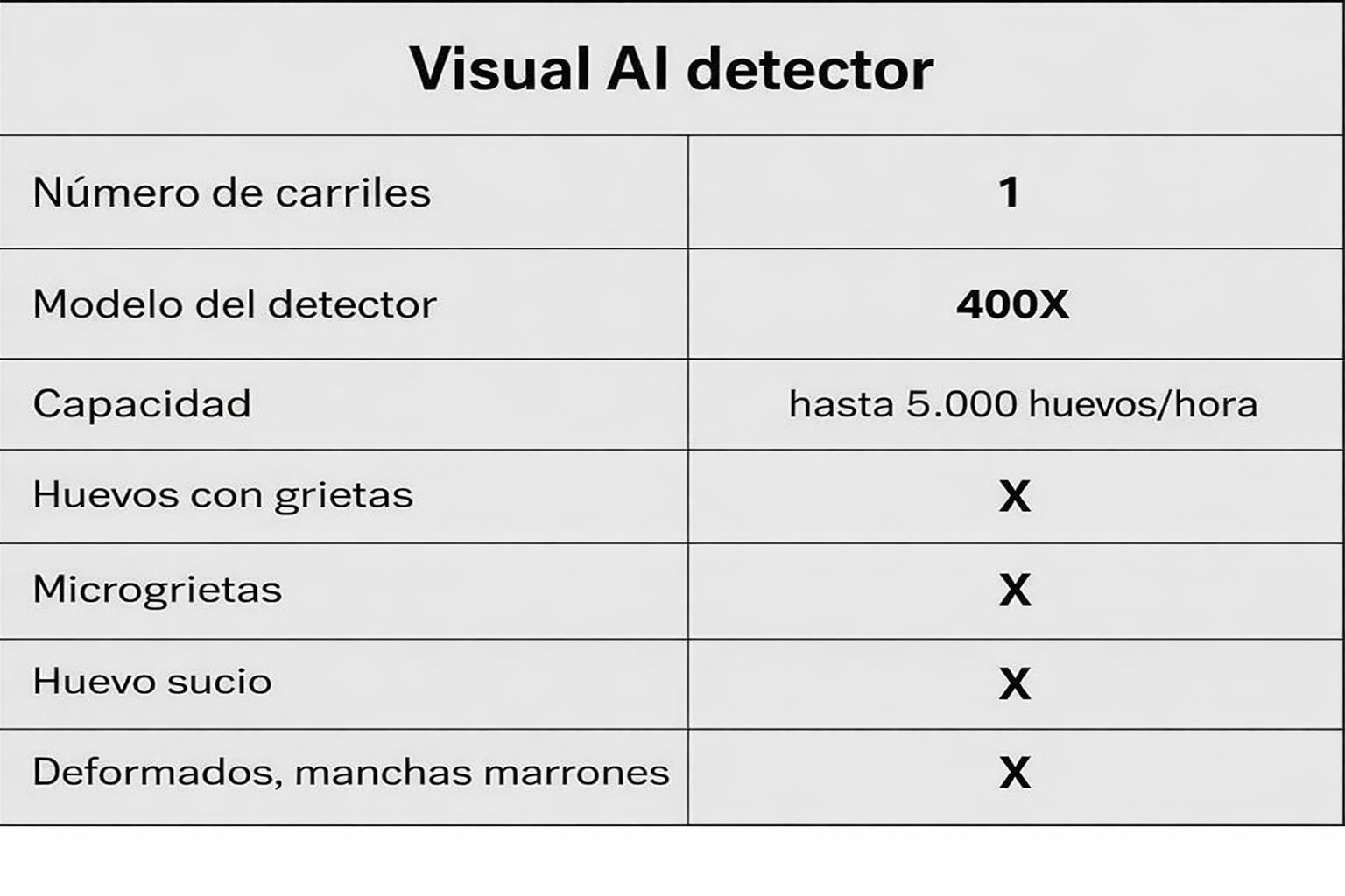 - Capacidad: hasta 5 000 huevos/hora (zona de inspección de un solo carril)