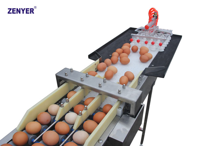 El transportador de almacenamiento es un asistente indispensable para cargar huevos a las máquinas de clasificación de huevos. Con ayuda de un elevador de vacío, puede poner 30 huevos a vez, que se enviarán en 2 o 3 filas para alimentarlos a las máquinas.
