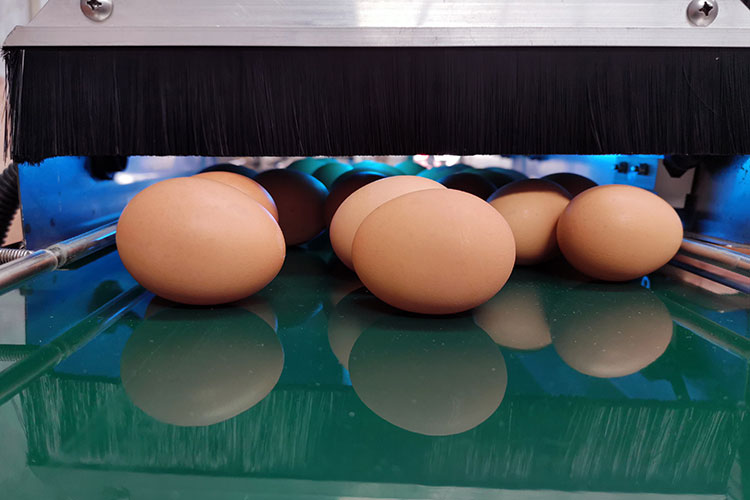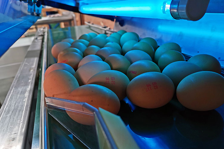 Este modelo se utiliza para conectar las máquinas de lavado de huevos a las máquinas de clasificación de huevos, así como para acelerar y simplificar carga de huevos a las máquinas con ayuda de un elevador de vacío. Además, esterilizador UV está integrado en transportador.