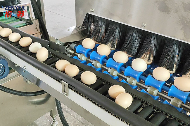 Una adición muy completa a todas máquinas de lavado y clasificación de huevos de la línea ZENYER. Proporciona una carga rápida de huevos a las máquinas con ayuda de un sistema de orientación especial que guía cuidadosamente 6 filas en 1 fila.