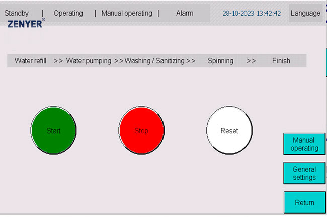 Funciona de manera similar a una lavadora industrial: no es necesario supervisar el proceso, ya que la máquina se detiene automáticamente y pasa a modo de espera al finalizar el ciclo completo.