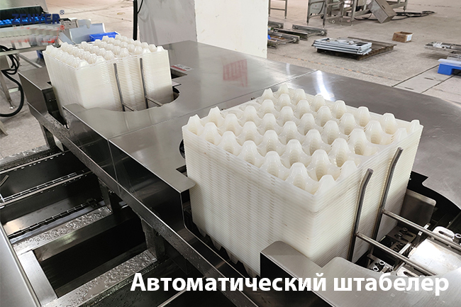 La máquina está equipada con un sistema de carga automática de celdas desde pilas de hasta 50 × 2 unidades. A la salida, un apilador automático organiza las bandejas limpias en pilas de hasta 80 × 2 unidades, optimizando el flujo de trabajo.