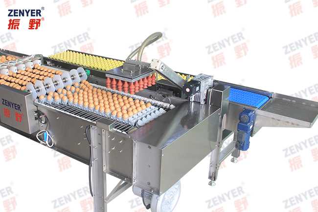 Línea de envasado de huevos ZENYER TOTALMENTE automática. Embalaje solo a bandejas de 30 piezas. Capacidad de 27000 huevos por hora. Diseñado para ser utilizado solo por SEPARADO. Solo se necesita 1 persona para operar la línea. Se puede conectar directamente al gallinero para empacar huevos sucios para su posterior transporte. El consumo mínimo de electricidad y bajo precio hacen de esta máquina un asistente indispensable en trabajo. Puede conectarse a maquina de lavado de huevos 203A