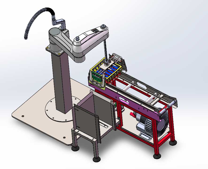 Состав поставки: роботизированный модуль с вакуумным захватом, подающий/приёмный конвейеры, панель управления HMI, защитное ограждение