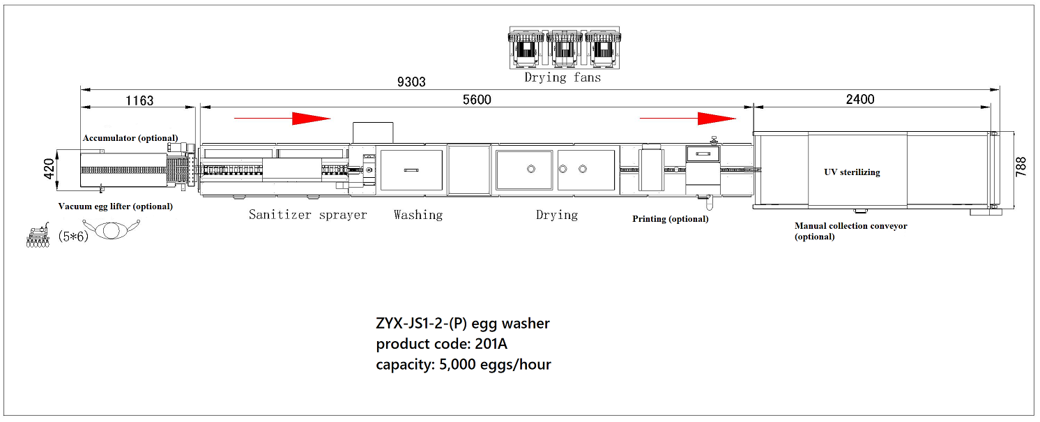 Línea de lavado de huevos, ovoscopio, impresora ZYX-JS1-3 (202A)
